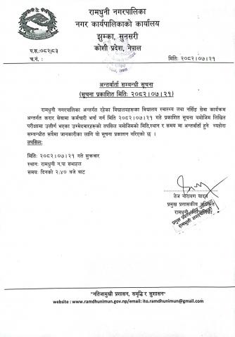 रामधुनी नगरपालिकाको आन्तरिक राजस्व संकलन ठेक्का आह्वान सूचना