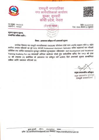 रामधुनी नगरपालिका स्थानीय राजपत्र