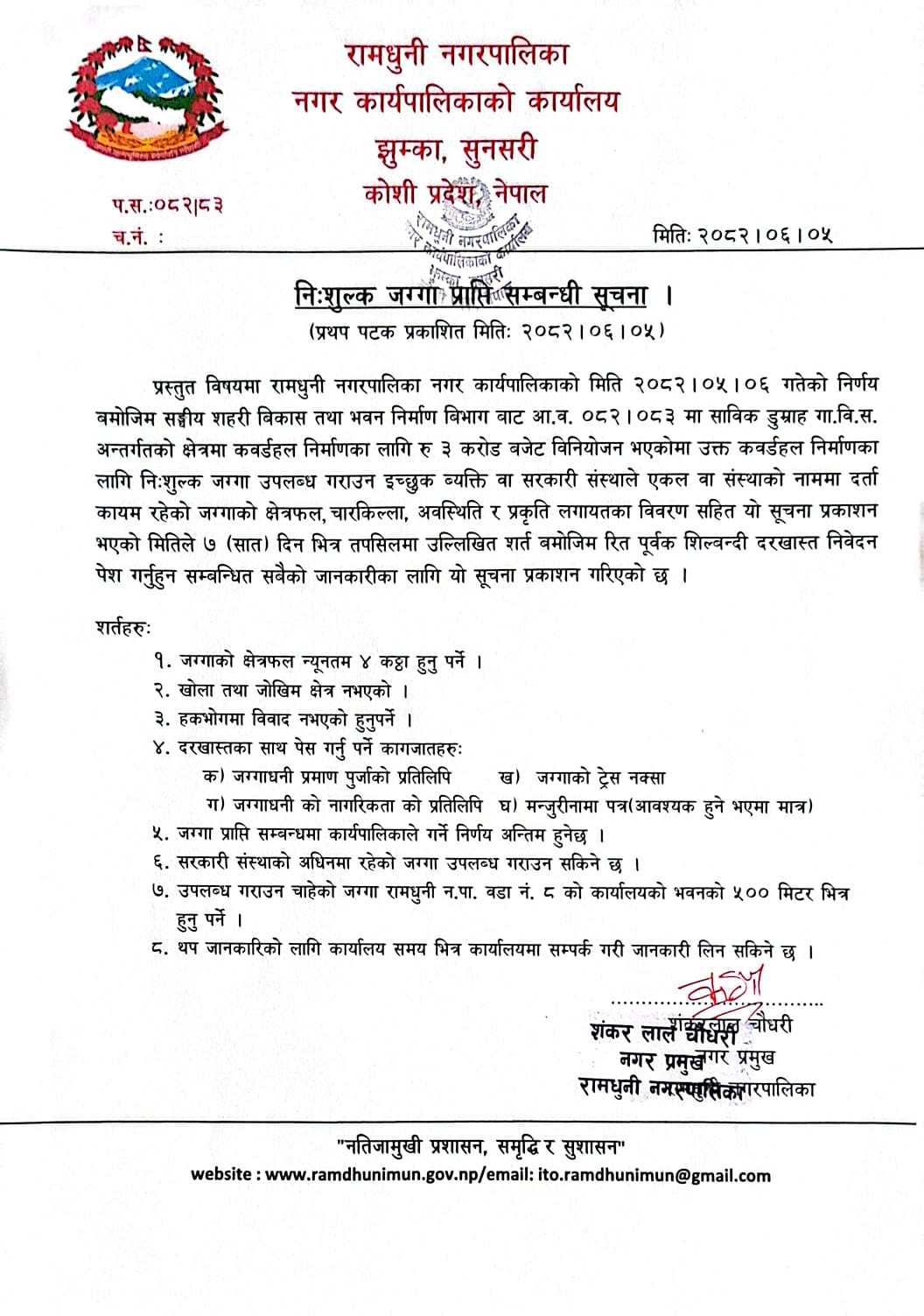 निःशुल्क जग्गा प्राप्ति सम्बन्धी सूचना
