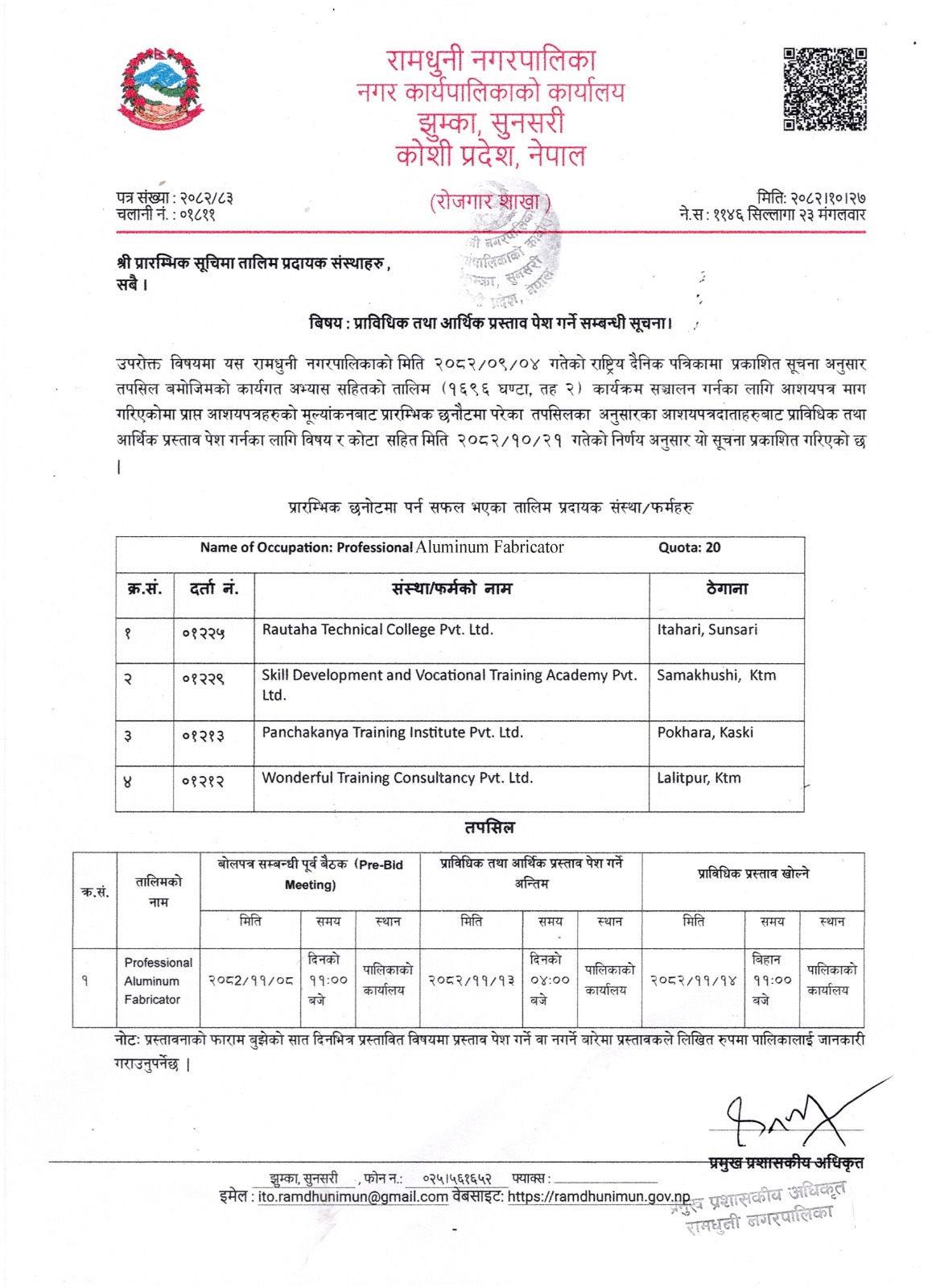 आर्थिक प्रस्ताब खोल्ने बारे सूचना