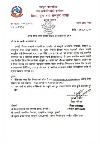 रिक्त पदमा स्थायी शिक्षक सरुवा सम्बन्धी सूचना ।