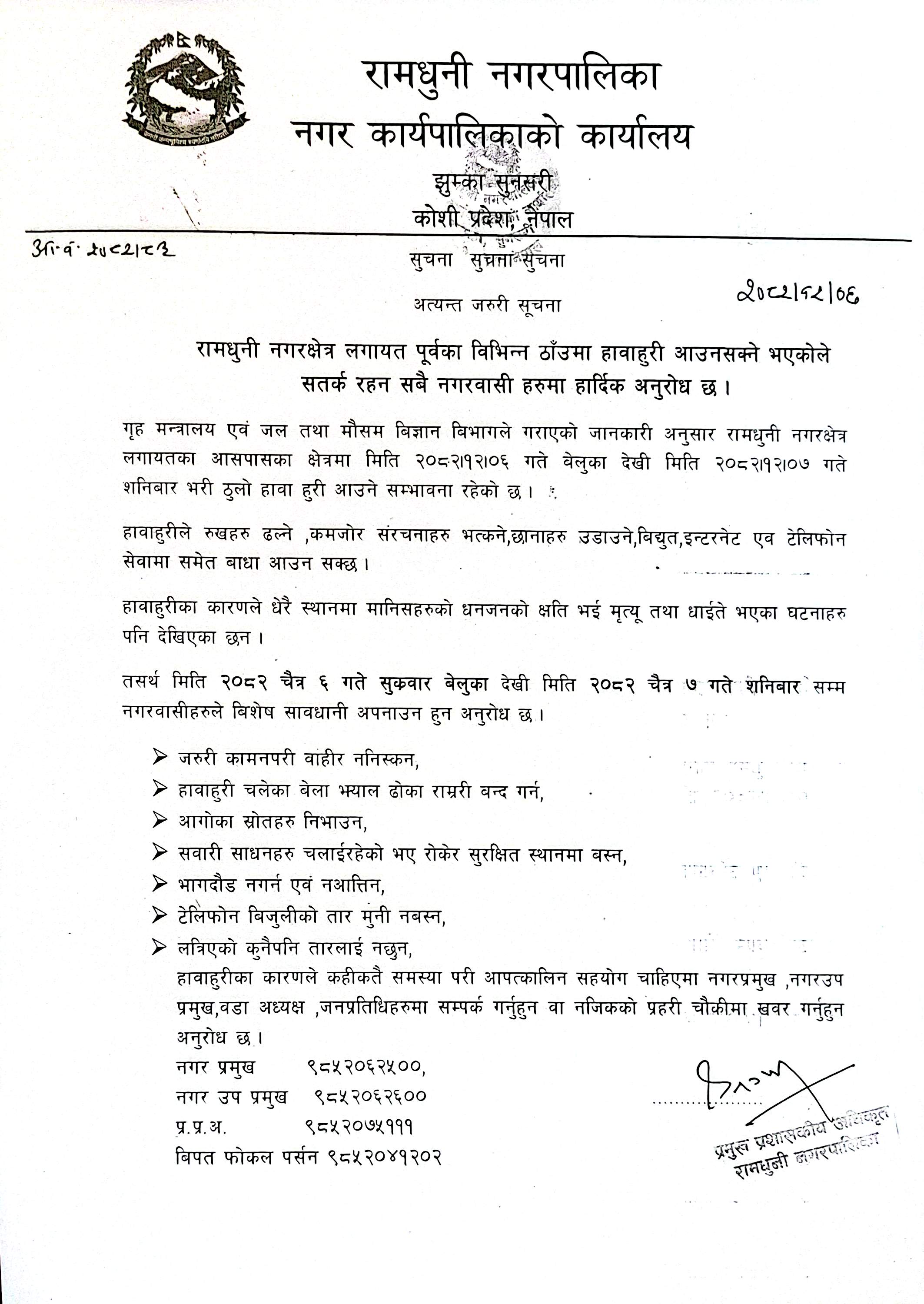 रामधुनी नगरपालिकाको O&M