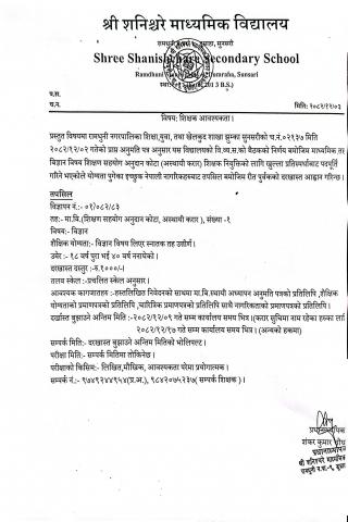शिक्षक आवश्यकता सम्बन्धी सूचना
