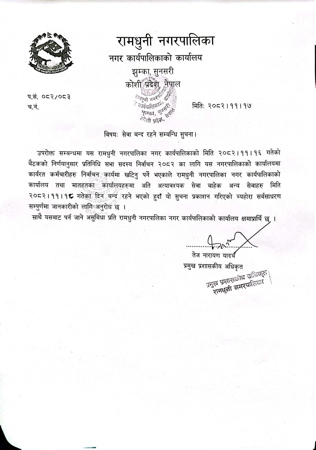 रामधुनी नगरपालिका स्थानीय राजपत्र