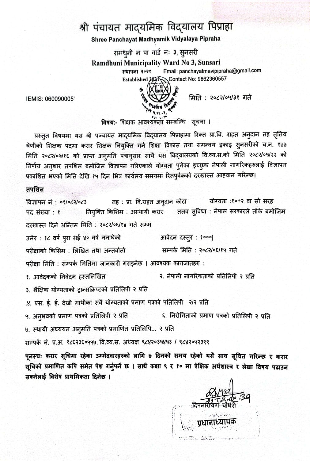 » शिक्षक आवश्यकता सम्बन्धी सूचना
