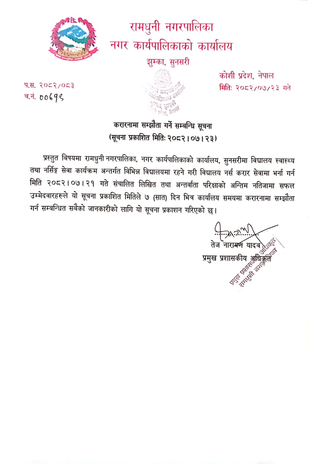 रामधुनी नगरपालिकाको आन्तरिक राजस्व संकलन ठेक्का आह्वान सूचना