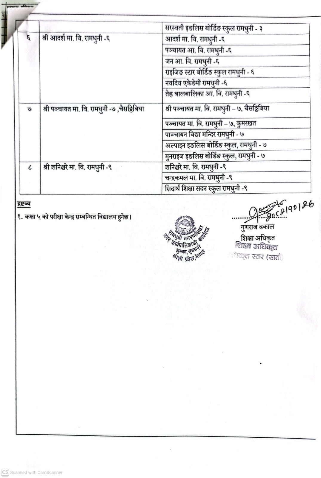 शैक्षिक सत्र २०८२ को आधारभूत तह उत्तीर्ण (कक्षा ८) परीक्षा र कक्षा ५ को नगरस्तरीय परीक्षाको परीक्षा केन्द्र सम्बन्धी सूचना